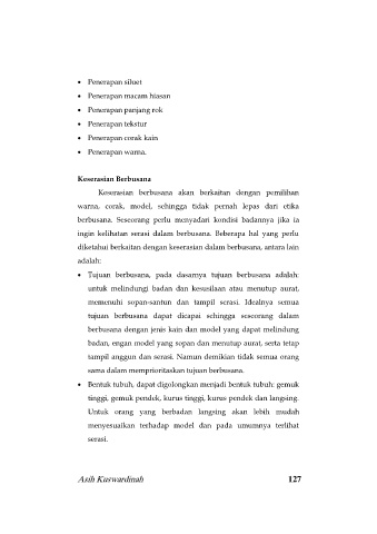 diketahui berkaitan dengan keserasian dalam berbusana, antara lain