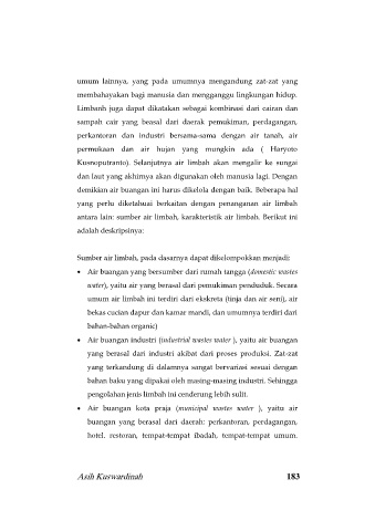 antara lain: sumber air limbah, karakteristik air limbah. Berikut ini