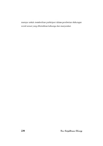 mampu untuk memberikan partisipasi dalam pemberian dukungan social sesuai yang dibutuhkan keluarga dan masyarakat. 230 Ilmu Kesejahteraan Keluarga