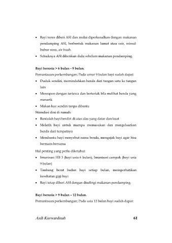 Bayi terus diberi ASI dan mulai diperkenalkan dengan makanan