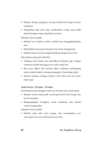 Pemantauan perkembangan; Pada usia 18 bulan anak sudah dapat: