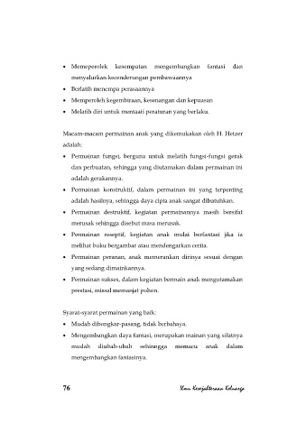 Macam-macam permainan anak yang dikemukakan oleh H. Hetzer