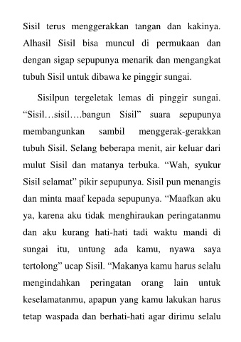 Sisil selamat” pikir sepupunya. Sisil pun menangis
