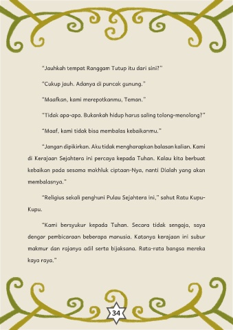 “Religius sekali penghuni Pulau Sejahtera ini,” sahut Ratu Kupu-