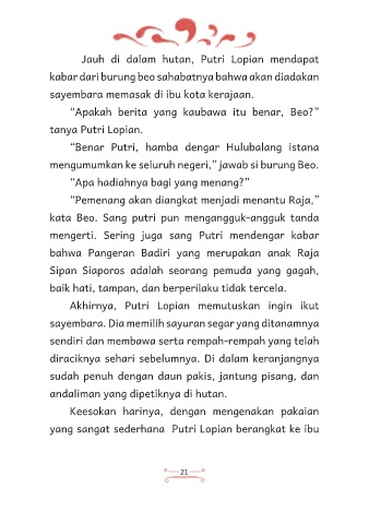Jauh di dalam hutan, Putri Lopian mendapat