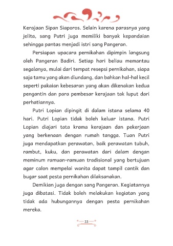 hari. Putri Lopian tidak boleh keluar istana. Putri