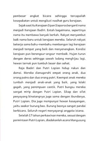 Raja Badiri dan Putri Lopian hidup rukun dan