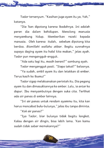 supaya daging ayam itu halal kita makan,” jelas ayah.