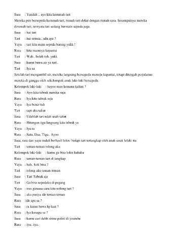 Mereka pun bersepeda kerumah tari, rumah tari dekat dengan rumah sasa. Sesampainya mereka
