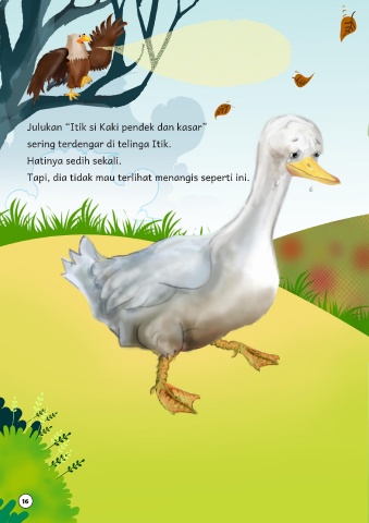 Julukan “Itik si Kaki pendek dan kasar” sering terdengar di telinga Itik. Hatinya sedih sekali. Tapi, dia tidak mau terlihat menangis seperti ini. 16