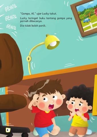 “Gempa, Al,” ujar Lucky takut. Lucky teringat buku tentang gempa yang pernah dibacanya. Dia tidak boleh panik. 8