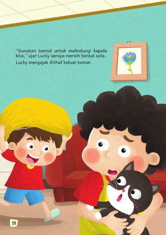 “Gunakan bantal untuk melindungi kepala kita,” ujar Lucky seraya meraih bantal sofa. Lucky mengajak Althaf keluar kamar. 10