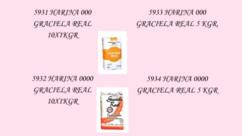 5931 HARINA 000 5933 HARINA 000 GRACIELA REAL GRACIELA REAL 5 KGR. 10X1KGR 5932 HARINA 0000 5934 HARINA 0000 GRACIELA REAL GRACIELA REAL 5 KGR 10X1KGR