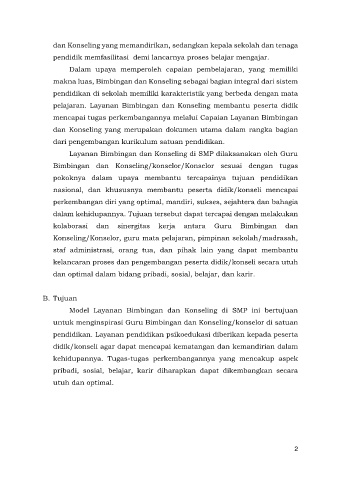 Model Layanan Bimbingan dan Konseling di SMP ini bertujuan