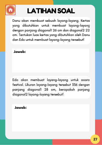 dengan panjang diagonal1 26 cm dan diagonal2 22
