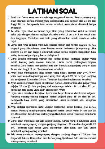 9. Danu akan membuat sebuah layang-layang. Kertas yang dibutuhkan untuk