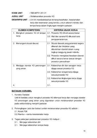 DESKRIPSI UNIT : Unit ini mendeskripsikan tentang kesehatan, keselamatan