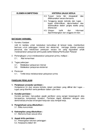 ELEMEN KOMPETENSI KRITERIA UNJUK KERJA