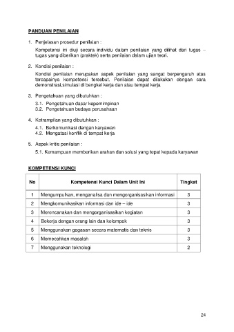 No Kompetensi Kunci Dalam Unit Ini Tingkat