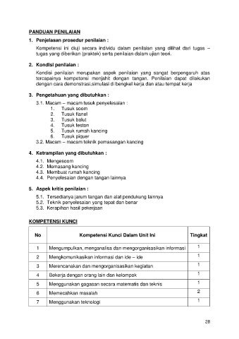 tercapainya kompetensi menjahit dengan tangan. Penilaian dapat dilakukan