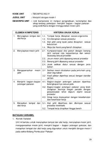 Unit ini berlaku untuk menyiapkan tempat dan alat kerja, menyiapkan mesin jahit,