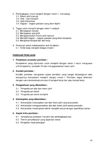 2. Perlengkapan untuk menjahit dengan mesin I , mencakup :