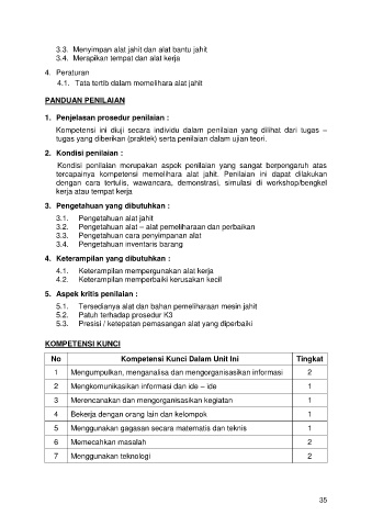 tercapainya kompetensi memelihara alat jahit. Penilaian ini dapat dilakukan