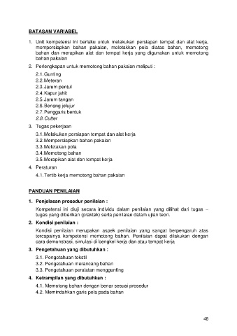 tercapainya kompetensi memotong bahan. Penilaian dapat dilakukan dengan