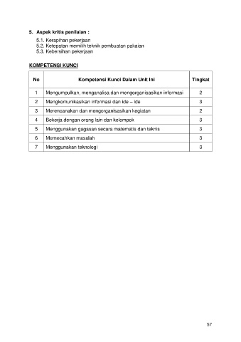 No Kompetensi Kunci Dalam Unit Ini Tingkat