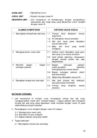 tempat dan alat kerja yang digunakan untuk menjahit dengan mesin III pada