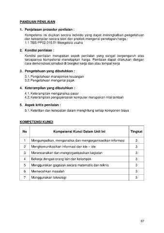tercapainya kompetensi menetapkan harga. Penilaian dapat dilakukan dengan