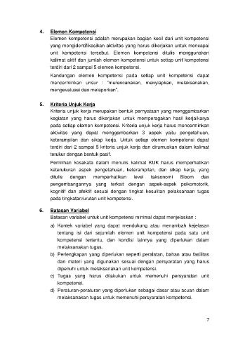 unit kompetensi tersebut. Elemen kompetensi ditulis menggunakan