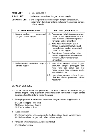 1. Unit ini berlaku untuk mempersiapkan dan melaksanakan komunikasi dengan