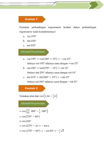 Artinya cos 195° nilainya sama dengan −cos 15°