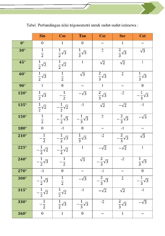 Tabel Perbandingan nilai trigonometri untuk sudut-sudut istimewa :