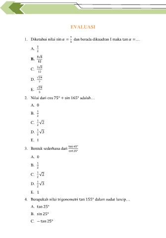 1. Diketahui nilai sin = dan berada dikuadran I maka tan =…