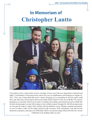 turn your entire day around and he always put others before himself. Chris was with the LTU hockey