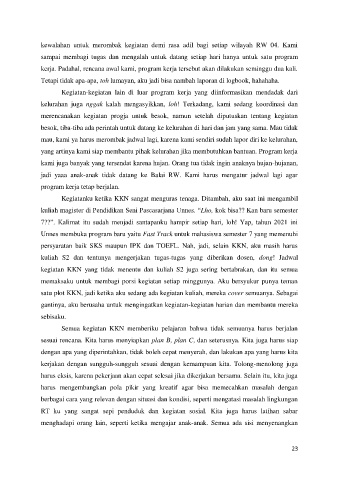 kegiatan KKN yang tidak menentu dan kuliah S2 juga sering bertabrakan, dan itu semua
