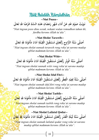 “Niat ingsun sholat sunnah teraweh rong reka’at sarono madep