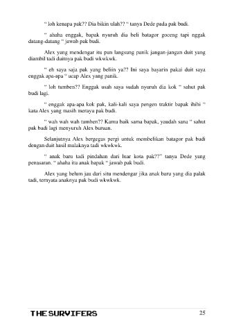 “ ahaha enggak, bapak nyuruh dia beli batagor goceng tapi nggak
