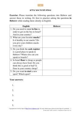 Exercise: Please translate the following questions into Hebrew and