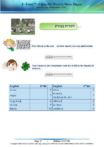 Copyrighted and owned by Ulpan-Or. Any usage, copying and distribution without express permission from Ulpan-Or is prohibited.