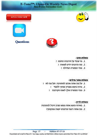 Copyrighted and owned by Ulpan-Or. Any usage, copying and distribution without express permission from Ulpan-Or is prohibited.