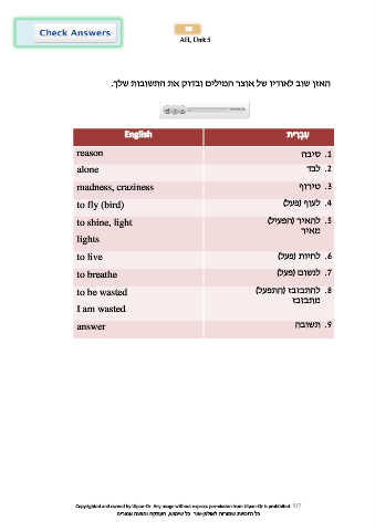 .האזן שוב לאודיו של אוצר המילים ובדוק את התשובות שלך