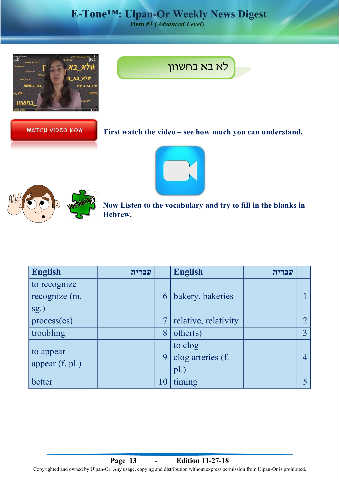Copyrighted and owned by Ulpan-Or. Any usage, copying and distribution without express permission from Ulpan-Or is prohibited.