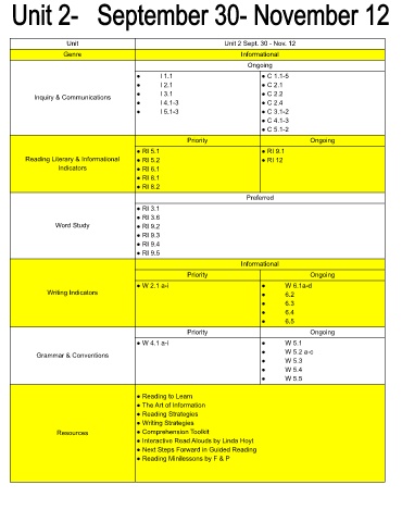 Unit                                            Unit 2 Sept. 30 - Nov. 12