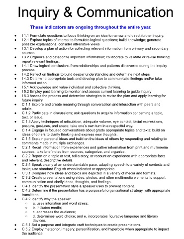 ● I 5.2 Employ past learning to monitor and assess current learning to guide inquiry