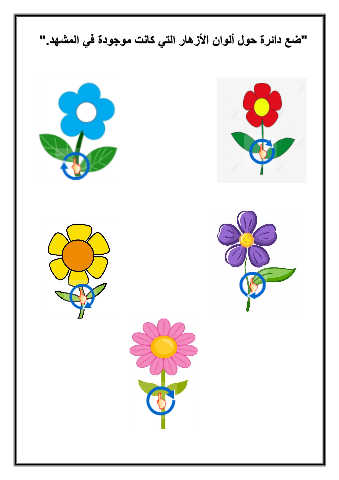 ".دﮭﺷﻣﻟا ﻲﻓ ةدوﺟوﻣ تﻧﺎﻛ ﻲﺗﻟا رﺎھزﻷا ناوﻟأ لوﺣ ةرﺋاد ﻊﺿ"