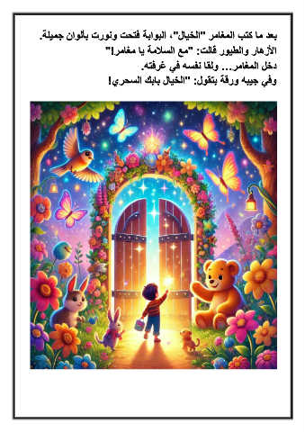 .ﺔﻠﯾﻣﺟ ناوﻟﺄﺑ تروﻧو تﺣﺗﻓ ﺔﺑاوﺑﻟا ،"لﺎﯾﺧﻟا" رﻣﺎﻐﻣﻟا بﺗﻛ ﺎﻣ دﻌﺑ "!رﻣﺎﻐﻣ ﺎﯾ ﺔﻣﻼﺳﻟا ﻊﻣ" :تﻟﺎﻗ روﯾطﻟاو رﺎھزﻷا .ﮫﺗﻓرﻏ ﻲﻓ ﮫﺳﻔﻧ ﺎﻘﻟو …ر ﻣﺎﻐﻣﻟا لﺧد ! يرﺣﺳﻟا كﺑﺎﺑ لﺎﯾﺧﻟا" :لوﻘﺗﺑ ﺔﻗرو ﮫﺑﯾﺟ ﻲﻓو