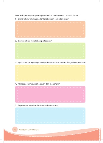 Jawablah pertanyaan-pertanyaan berikut berdasarkan cerita di depan.